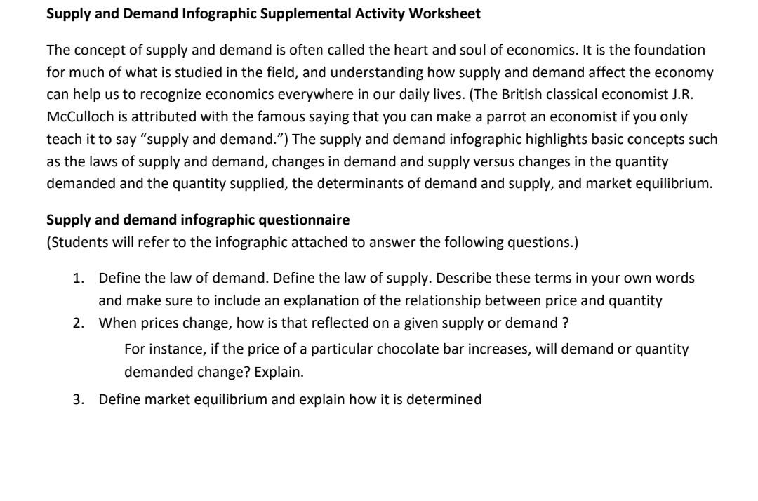Supply and Demand Infographic Supplemental Activity Worksheet